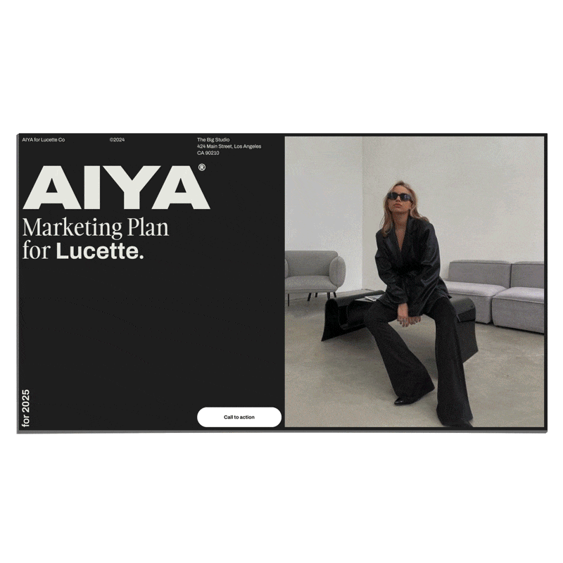 The Aiya Marketing Plan is a comprehensive template designed for Canva and Adobe Indesign. It provides a structured format to develop a winning marketing plan, covering objectives, target audience, strategies, metrics, budget, tactics, and implementation. With 20 fully customizable slides and two cover color options, it caters specifically to brand and marketing agencies, assisting them in creating effective marketing strategies for their clients. The template emphasizes the importance of aligning marketing efforts with brand strategy and includes actionable metrics to track success. It is compatible with Canva and Indesign CS4 and above, 1920x1080px and allowing easy customization of colors, fonts, and elements. Please note that photographs and mockups are for illustrative purposes only.